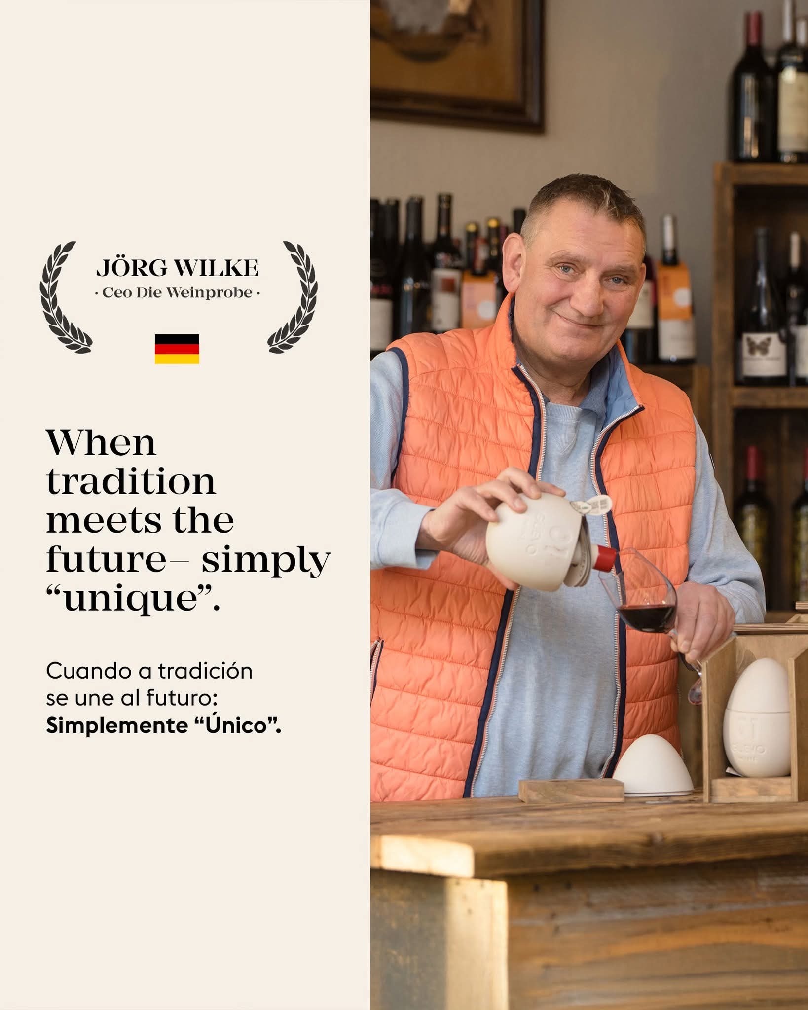 In den 70ern hat Pedro Langa mit diesem „Wein-Ei“ die Gesetze der Ästhetik neu geschrieben. Und wir? Wir sind als offizielle deutsche Vertretung dein Türsteher zur Welt von Langa. Warum das wichtig ist? Weil wir dafür sorgen, dass du kein „Ei-Imitat“ kriegst, sondern das echte spanische Lebensgefühl mit deutscher Zuverlässigkeit.