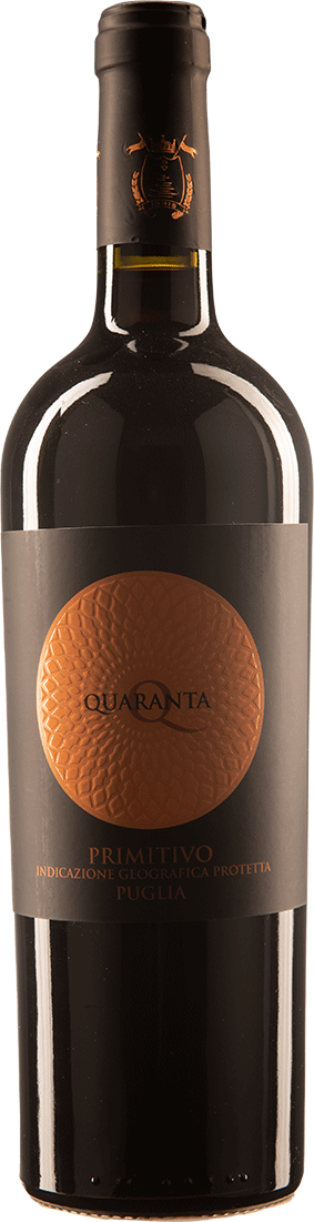 Polpette brutzeln, Salentos Küste ruft – dieser Quaranta Primitivo entfacht deinen Abend. Der 2018er, 100% Primitivo, ist ein tiefroter Star: